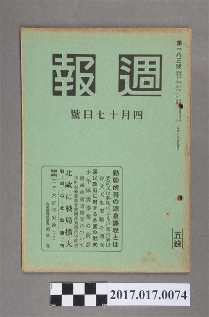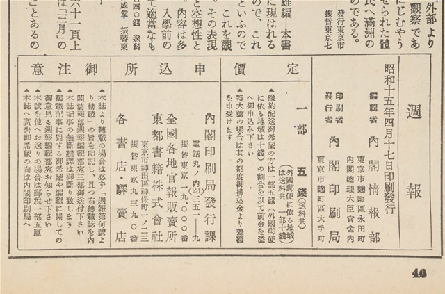 2017.017.0074 昭和15年4月17日發行內閣情報部編《週報》第183號