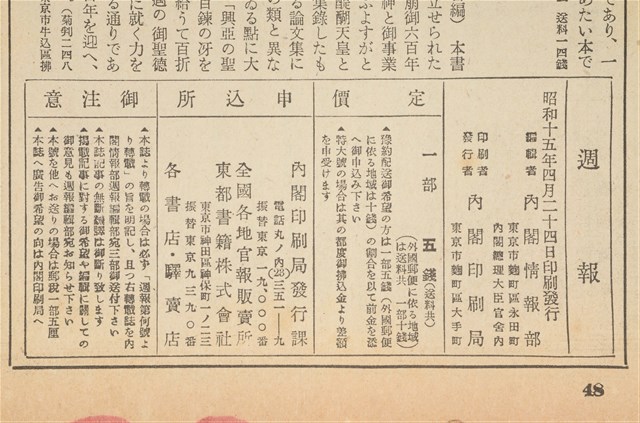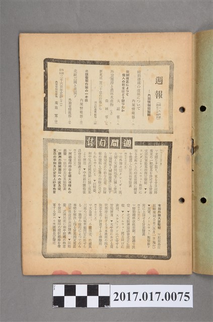 2017.017.0075 昭和15年4月24日發行內閣情報部編《週報》第184號