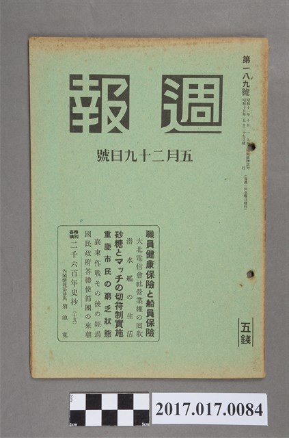 2017.017.0084 昭和15年5月29日發行內閣情報部編《週報》第189號