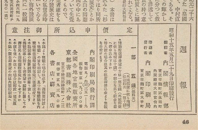昭和15年5月29日發行內閣情報部編《週報》第189號