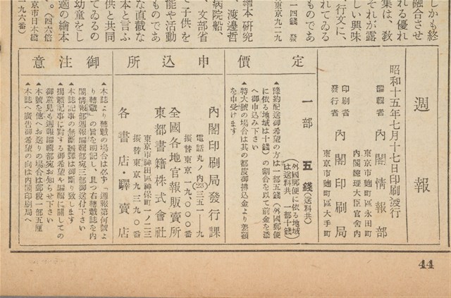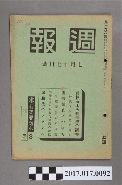2017.017.0092 昭和15年7月10日內閣情報部編《週報》第196號