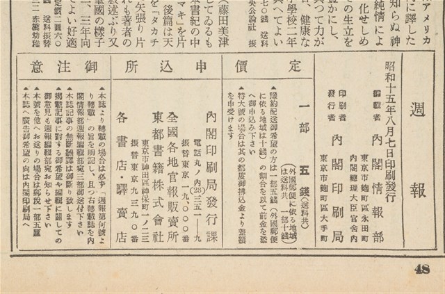 昭和15年8月7日內閣情報部編《週報》第199號