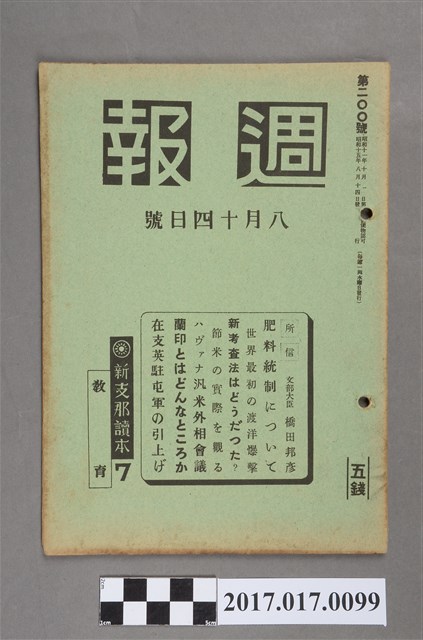 2017.017.0099 昭和15年8月14日內閣情報部編《週報》第200號