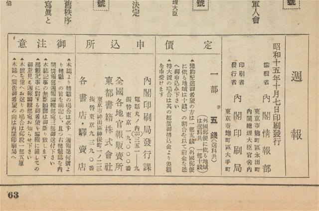 2017.017.0107 昭和15年10月10日內閣情報部編《週報》第208號