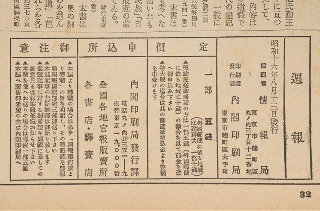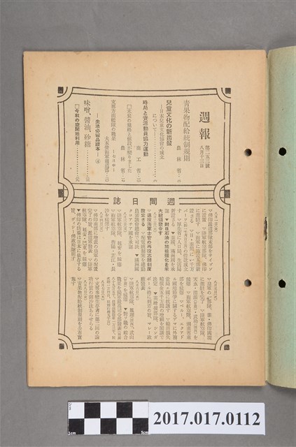 2017.017.0112 昭和16年8月13日內閣情報部編《週報》第253號