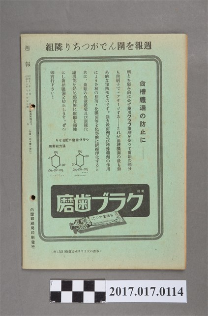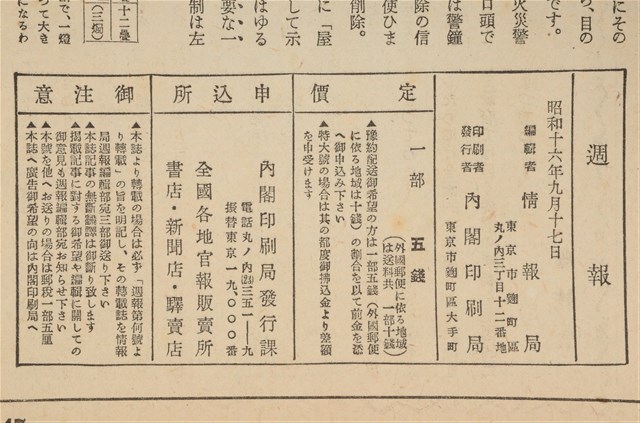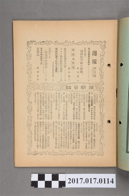 2017.017.0114 昭和16年9月17日內閣情報部編《週報》第258號