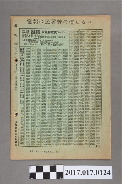 2017.017.0124 昭和17年12月9日內閣情報部編《週報》第322號