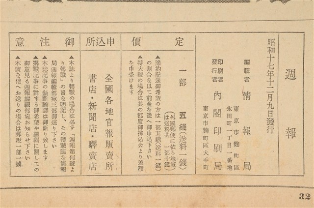 昭和17年12月9日內閣情報部編《週報》第322號