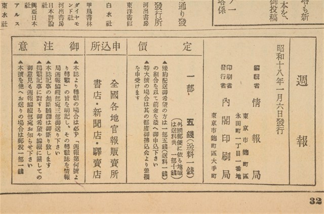 2017.017.0125 昭和18年1月6日內閣情報部編《週報》第325號