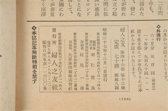 昭和27年12月1日婦人之友社發行《婦人之友》第46卷第12號