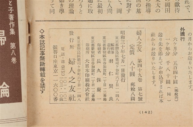 昭和30年7月1日婦人之友社發行《婦人之友》第49卷第7號