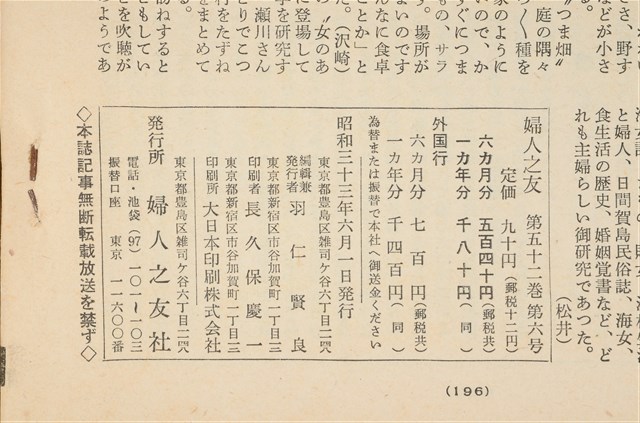 昭和33年6月1日婦人之友社發行《婦人之友》第52卷第6號