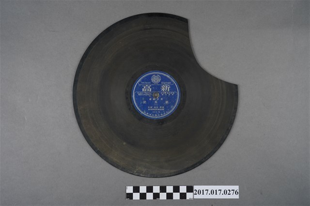 此份文物為日治時期的蟲膠唱片,《碧雲、秋娥、秋菊演唱:紙馬記》,外觀就為一片黑色圓盤,左上邊有缺一角,中間貼著一張圓形貼紙,正面上面寫著「TAIWAN NIHITAKA、新高、最新式電器吹進原音曲盤、ELECTRICAL RECORDING、歌仔戲劇、紙馬記(七)、碧雲‧秋娥‧菊秋、新高臺灣管絃樂團伴奏、504-A、臺灣蓄音器合資會社」,其背面則寫著「TAIWAN NIHITAKA、新高、最新式電器吹進原音曲盤、ELECTRICAL RECORDING、歌仔戲劇、紙馬記(八)、阿葉‧月絹‧菊秋、新高臺灣管弦樂團伴奏、504-B、臺灣蓄音器合資會社」。1928年,古倫美亞唱片(COLUMBIA)設立,並大舉收購面臨經營困難的日蓄股份,進而合併。古倫美亞唱片臺灣分店由日籍企業家柏野正次郎負責,同年,承接東洋、駱駝、飛鷹三家唱片公司的業務。可以從日治時期的唱片,來看臺灣歌仔戲劇的發展,歌仔戲起源於宜蘭地區,是臺灣傳統戲曲之一,早期演出內容多半為讓大眾也能接觸文雅辭彙或忠孝節義故事,是早期農業社會重要娛樂活動之一,也是臺灣常民文化的代表。