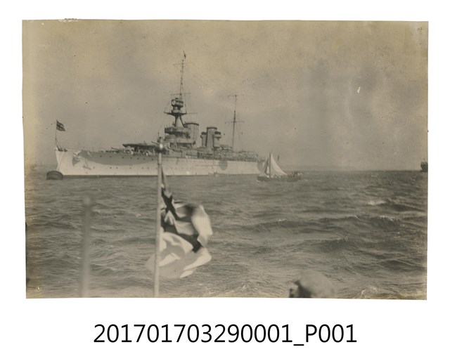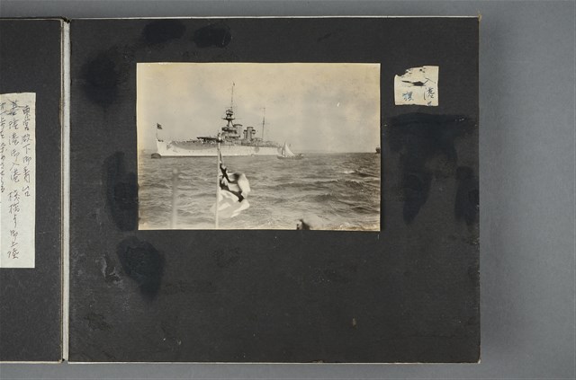 1.本照片為向金剛號落旗致敬,攝於1923年4月16日,拍攝地點約於基隆外海,遠方可見為基隆港東岸旭崗及二沙灣砲臺一帶的山巒,臺灣總督艦隊向日本皇太子裕仁來臺巡視搭乘的金剛號落旗致敬。金剛號為大日本帝國海軍第一艘超弩級巡洋艦,經兩次現代化改裝後活躍於後來的太平洋戰爭,本照片的金剛號為未改裝前樣貌。