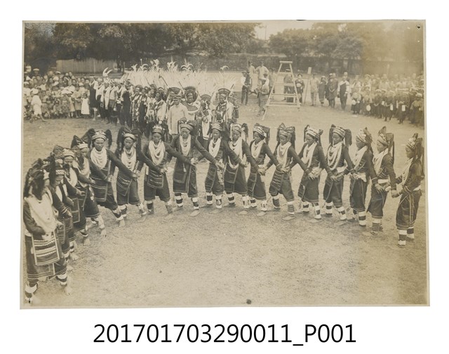 1.本文件為生蕃舞蹈表演,拍攝為1923年4月18日,拍攝地點為臺北御泊所前廣場(總督府官邸),照片內容為總督府安排各族原住民表演傳統舞蹈向皇太子裕仁致敬,展示理蕃事業的成果,趁此臺灣總督府也特別將臺灣原住民改名為「高砂族」。