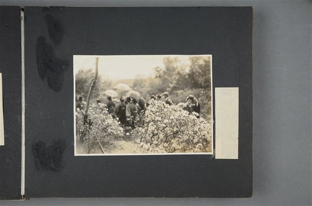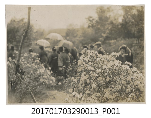 1本照片為群聚婦女與花,拍攝於1923年4月,拍攝地點不明,圖中除了前排盛開花叢外,後方可見一群持傘和服婦女,似乎在觀看什麼。