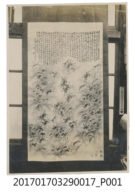 1.本文件為御臺賜覽石蟹圖,由蘆洲知名詩人畫家李學樵所畫,於皇太子裕仁來臺巡視時,題長文與百蟹圖獻給皇太子裕仁。