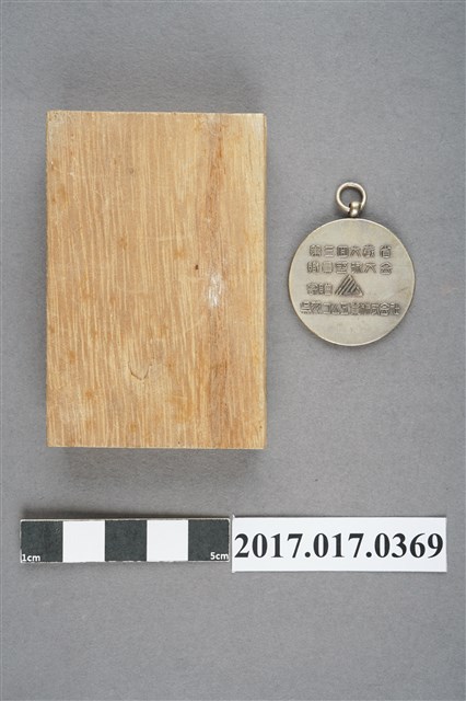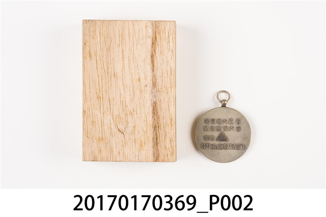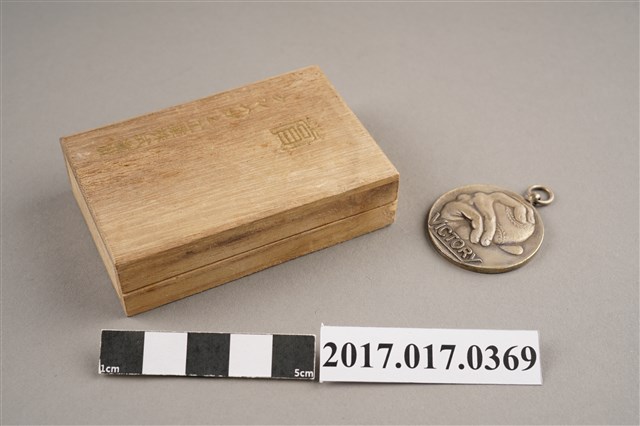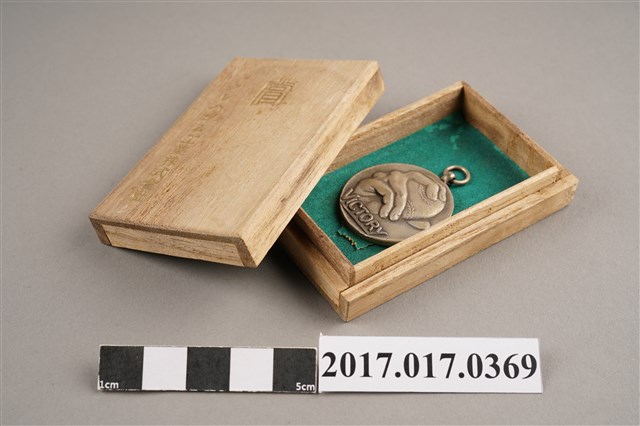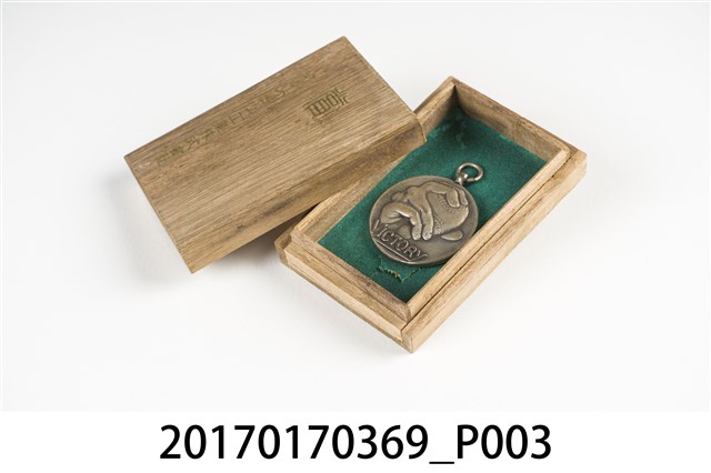 1.本文物為野球紀念章,年代不詳,是一棒球紀念章與放置棒球紀念章的盒子,其徽章為圓形,而圖樣為一隻手握著一顆球,另外,墜飾上面有一個小小的吊環,而背面則是刻有「第三回大藏省職員堅球大會 寄贈 吳羽ゴム工業株式會社」,盒子為木製小盒內墊有寫著御徽章的紙,正面刻著「賞吳羽ゴム工業株式會社」。
