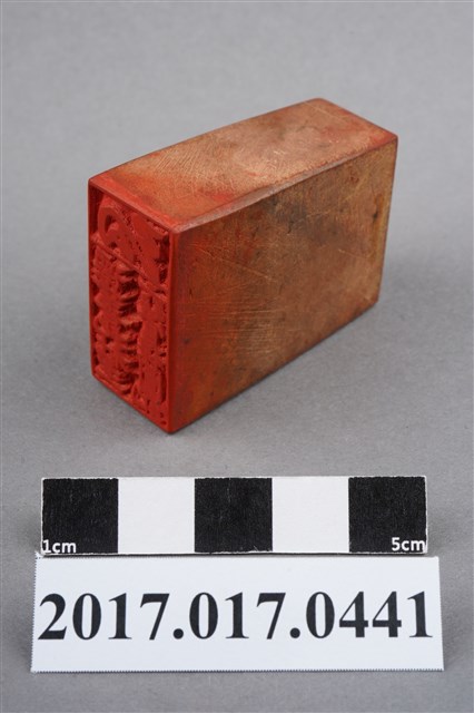 本文物為遷善北社主交官祿圖記印鑑,印章其他刻字難以辨識。印鑑年代應為清領時期,材質為木製長方體,保存狀況完整。