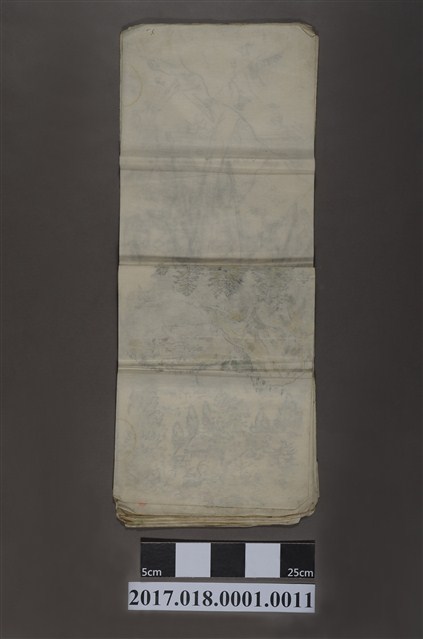 本畫作年代為日治時期,為一幅鉛筆畫的臺灣風景圖,本圖為直式畫作,並有多處摺痕。紙張正中央處畫有一株高聳的樹木坐落於坡地,後方山壁有兩處木造建築。古城江觀為日治時期畫家,受學於京都藝術家山元春舉,1924年在台灣進行全島創作寫生,其作品曾入選帝國美展,並曾於臺灣總督府舉辦畫展。