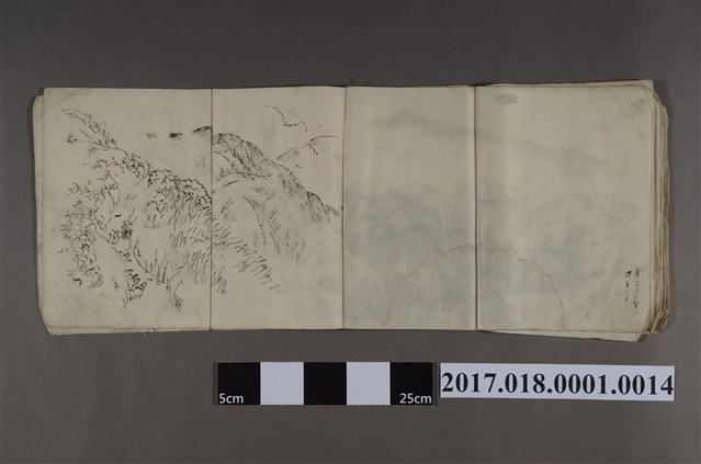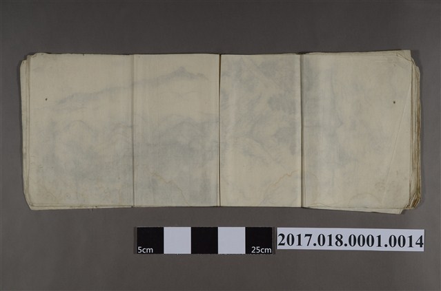 本畫作年代為日治時期,為手繪的臺灣風景圖,畫紙上多處摺痕。圖畫中的山勢由近而遠,逐漸升高,近處山坡地上的樹木高聳。紙張左下角處以毛筆寫有「新高山……」等字,及紅色圓圈。新高山為日治時期對玉山的稱呼,日治時期,日人發現玉山比富士山還要高,因而得名「新高山」。古城江觀為日治時期畫家,受學於京都藝術家山元春舉,1924年在台灣進行全島創作寫生,其作品曾入選帝國美展,並曾於臺灣總督府舉辦畫展。