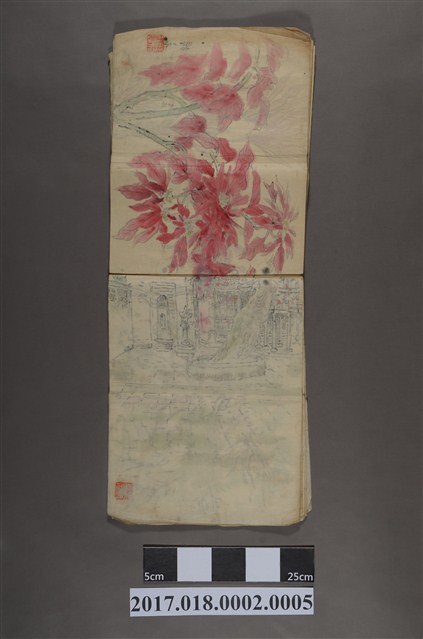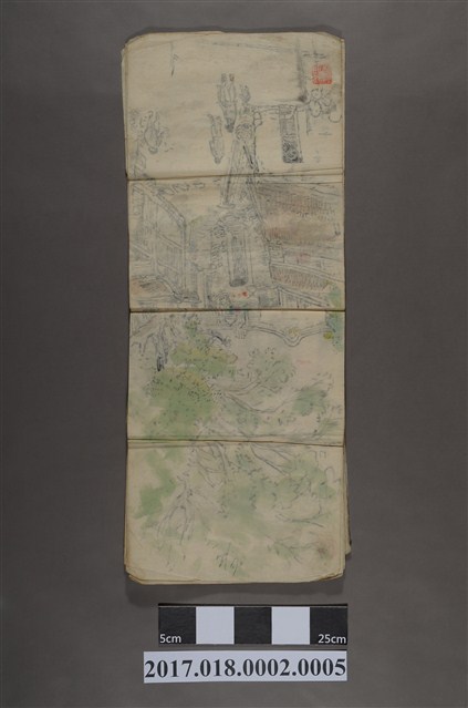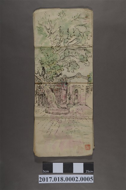 2017.018.0002.0005 古城江觀繪《臺灣傳統建築與日式石燈》