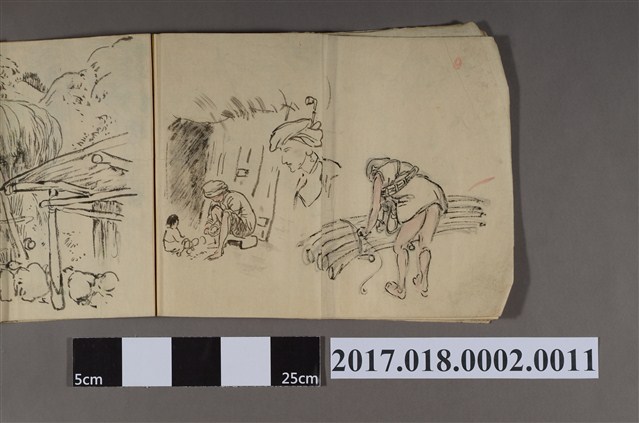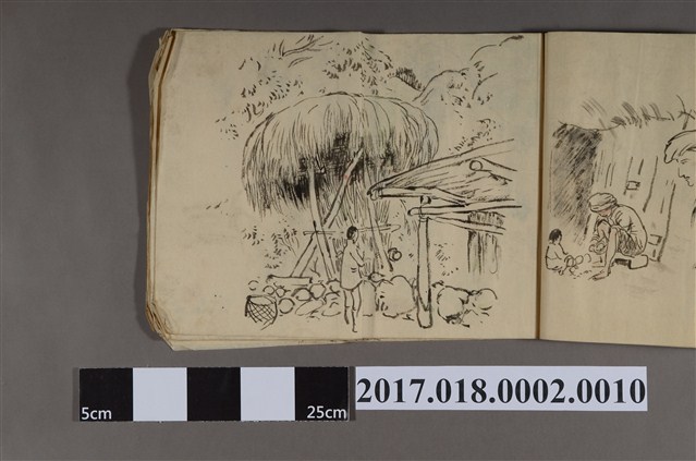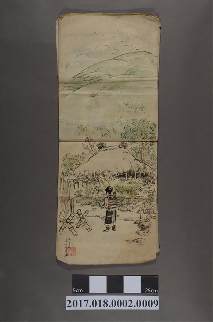 2017.018.0002.0007 古城江觀繪《阿里山原住民屋舍》