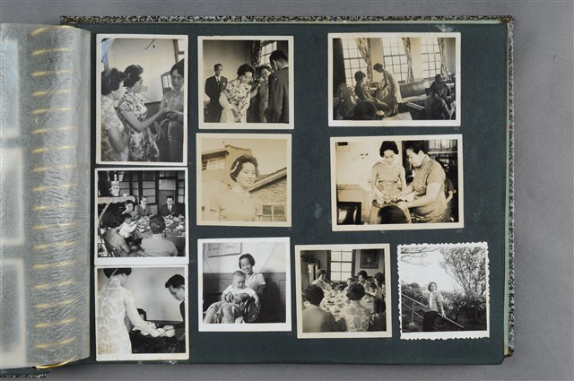 謝招治表姊黃靜子(左2)結婚,於迎娶儀式中與新郎相互行三鞠躬禮,夫妻交拜。黃靜子為謝招治三舅黃啟忠(後左1)之女。