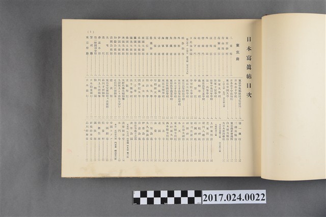 此文物為日本寫真相簿,由東京市的ともゑ商會發行,書序由擔任過多個日本中央重要職務的福原鐐二郎書寫,內容包含日本各府縣及殖民地各地重要政府機關、學校、寺廟、觀光地等,臺灣則有介紹臺灣神社、明治橋、圓山公園等景點。(撰稿人:曾國棟)