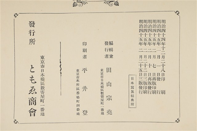 明治44年12月28日印刷,45年1月1日發行,2月7日再版印刷,2月10日再版發行,2月22日3版印刷,2月25日3版發行