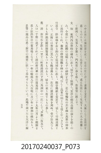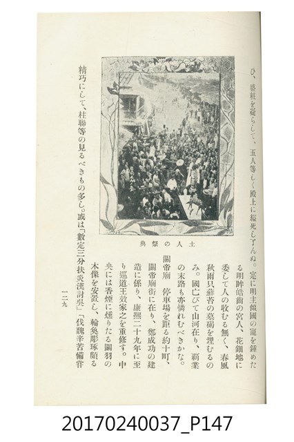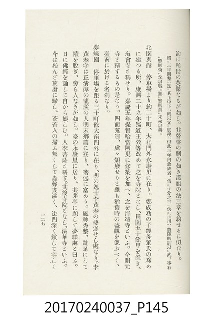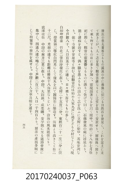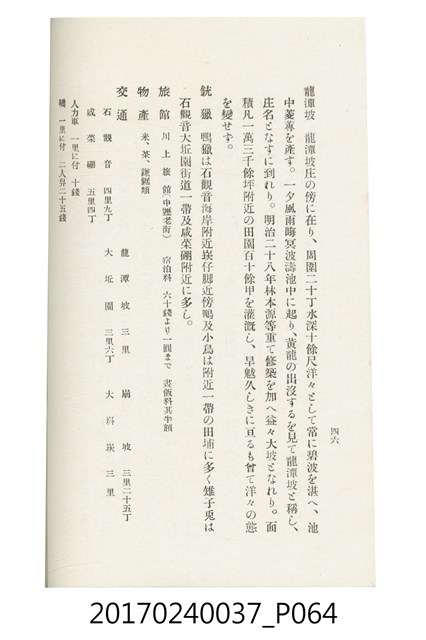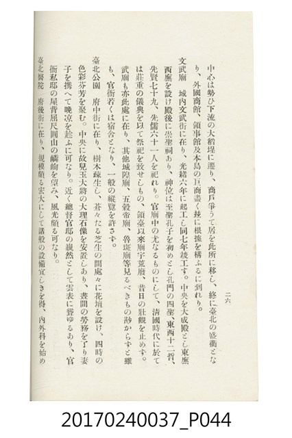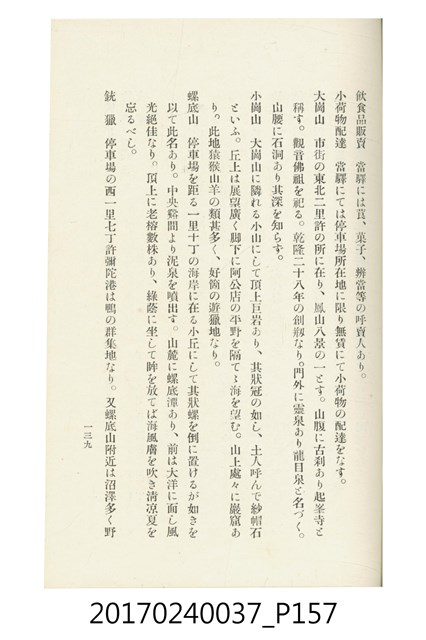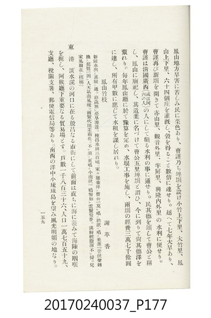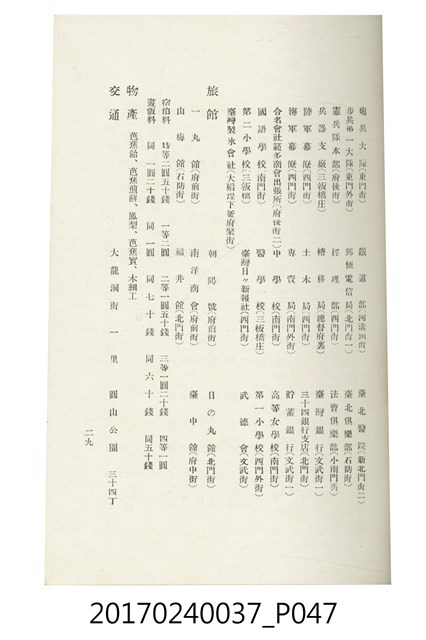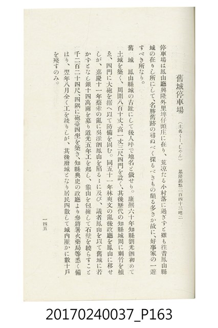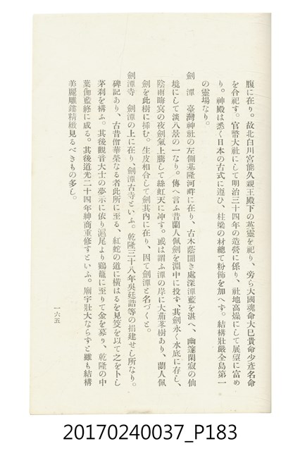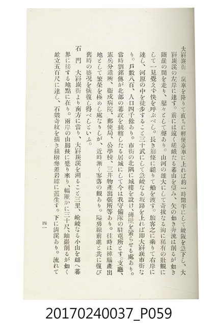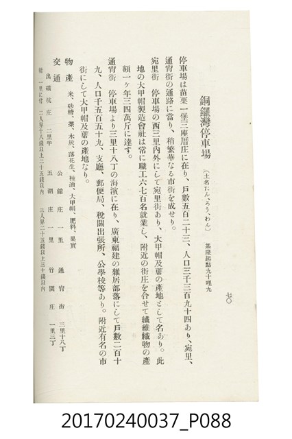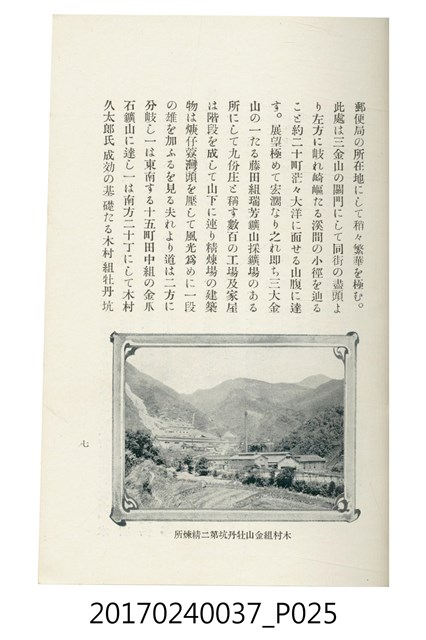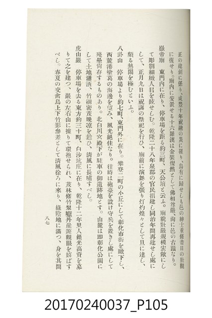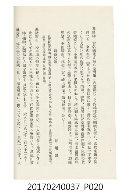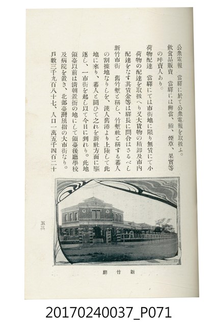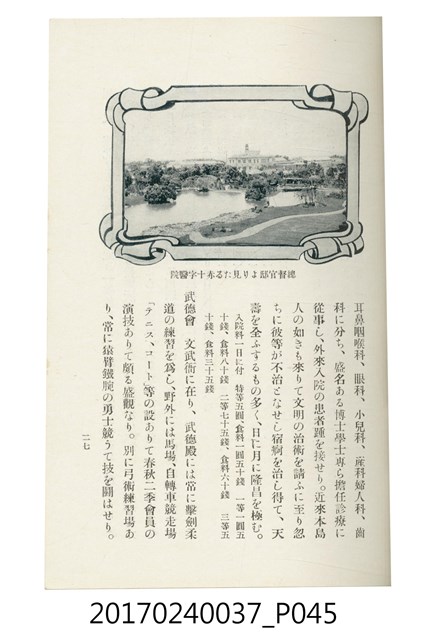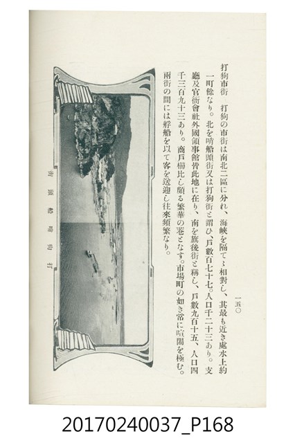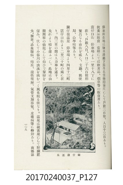 本文物為臺灣總督府鐵道部編的《臺灣鐵道名勝指南》,明治41年(1908年)發行,列出火車站名,基隆、八堵、七堵、五堵、永返腳、南港、錫口、臺北、艋舺、枋橋、樹林、山仔腳、鶯歌石、桃園、崁仔腳、中壢、安平鎮、楊梅壢、大湖口、紅毛田、新竹、香山、中港、造橋、後壠、苗栗、銅鑼灣、三叉河、後里庄、葫蘆墩、潭仔墘、臺中、烏日、大肚、彰化、茄苳腳、員林、社頭、田中央、二八水、林內、石榴班、斗六、他里霧、大菁林、打貓、嘉義、水堀頭、後?藔、新營庄、林鳳營、蕃仔田、灣裡、新市街、臺南、車路墘、中洲庄、太湖街、半路竹、阿公