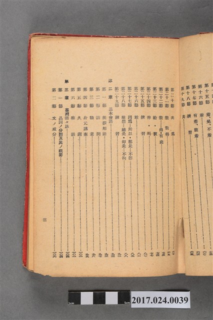 本文物為《臺灣語教科書》改訂第11版,於昭和19年(1944年)臺灣總督府警察官及司獄官練習所發行,應是用來當作在臺日本警察學習臺灣語的課本。依照書中內中可分有兩部分,第一部分是是緒論,介紹臺灣的語言,客家、福建人在臺灣的分布,以及臺灣語的發音、語調等;第二部分是教授臺灣語,依順序是「基準語形」(如是、不是、有、無)、「基本會話」(如訪問)、「臺灣語法」、「會話」(如戶口實查、清潔法檢查、警備用語)、「單語類集」(如數目、時令等名詞與形容詞)。(撰稿人:曾國棟)