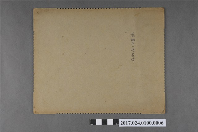 本文物為日治時期所拍攝,該照片貼於紙相框內。照片中共有46人,人群右側為一名著和服的女性。群像左側的屋舍立有一指示牌,上面寫有「國語研究會……講習生寄宿舍」。照片背面寫有「前排左一楊昆煌」。(撰稿人:曾國棟)