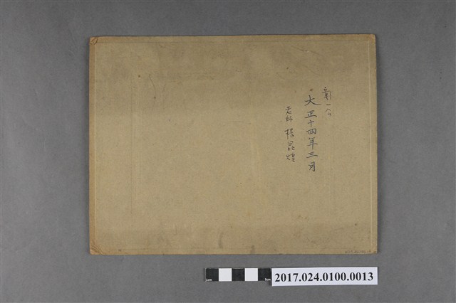 本文物拍攝於大正14年(1925),為楊昆煌任職於彰化第一公學校時期,與學生的合影,楊昆煌為前排中央戴著帽子的。照片中的學生皆為男性,且前排學生大多沒穿鞋。照片右下印有「京都紫田謹寫」,背面寫有「彰一公」、「大正十四年三月」、「老師楊昆煌」等字。(撰稿人:曾國棟)
