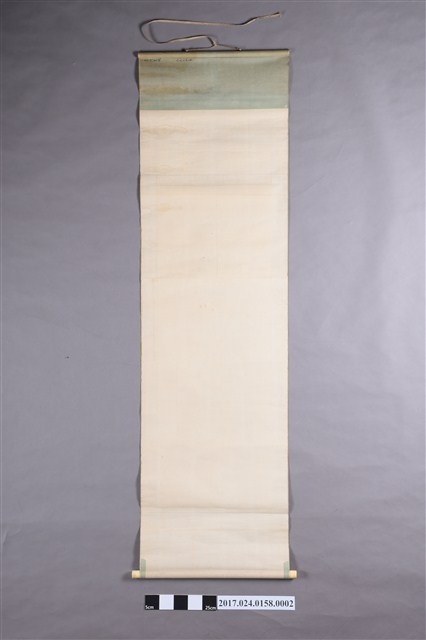 本文物為臺北舊城秋山春水卷軸掛畫,掛畫之年代為大正14年(1925年)。畫中描繪一戴斗笠之農夫在舊臺北城門前趕兩隻水牛。(撰稿人:曾國棟)