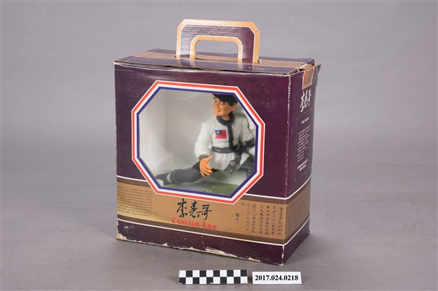 本文物為由臺灣區裝飾陶瓷輸出同業公會所製的「李表哥」公仔及其包裝。 李表哥為民國74年(1985年)行政院新聞局請美國漫畫家勞瑞(Ranan Lurie)為中國人建立新形象,並於同年12月12日,在臺北市立美術館展出,新聞局更在民國76年(1987年)舉辦「李表哥國際漫畫比賽」等相關活動。(撰稿人:曾國棟)