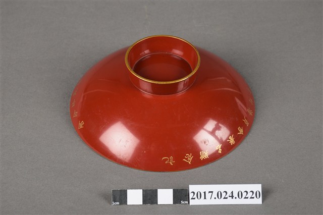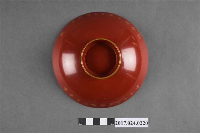 本文物為一漆杯,杯體紅色,杯緣字體為金色,杯緣題字「帝國在鄉軍人會鳳林分會,記念贈名譽會員清村守一殿」。鳳林位於現今花蓮縣,帝國在鄉軍人會是由日本人所組成。杯子中間的圖像是帝國在鄉軍人會徽章圖像,圖像由兩把刀與一顆星組成, 杯子受贈人是名譽會員清村守一。(撰稿人:曾國棟)