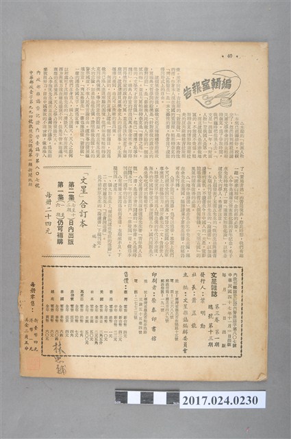 2017.024.0230 《文星雜誌》第3卷第1期