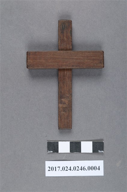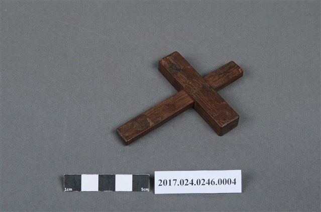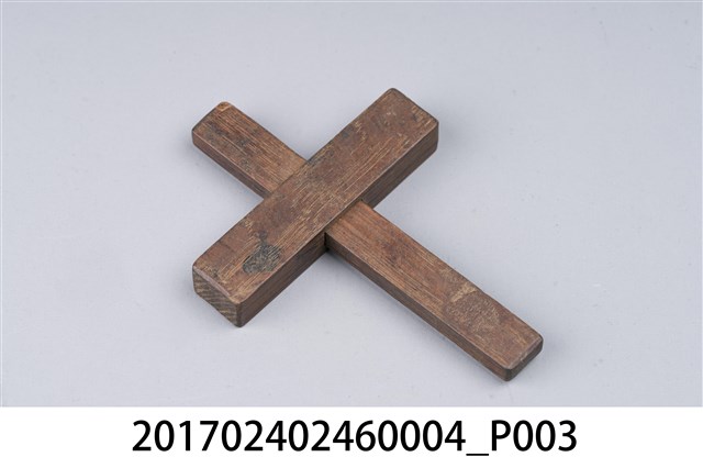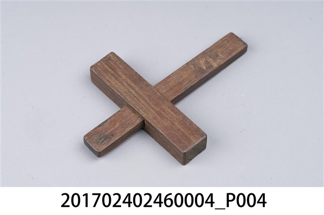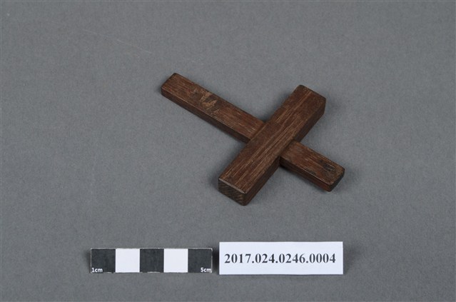 本文物為日治時期南投街木匠工具箱內一件十字形木規,用來測繪工具。(撰稿人:曾國棟)