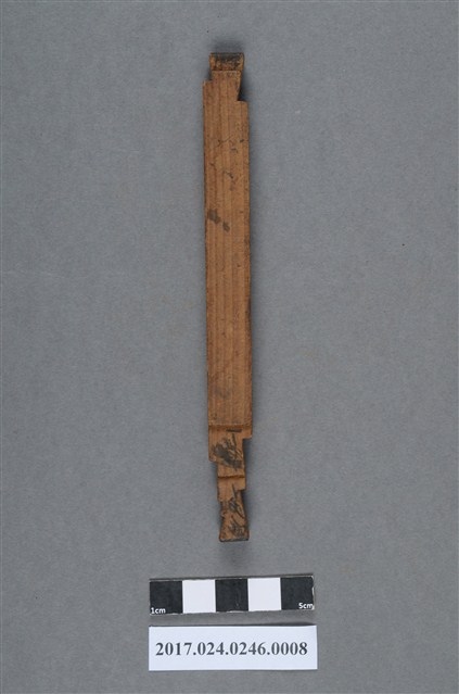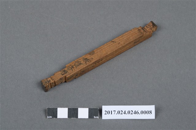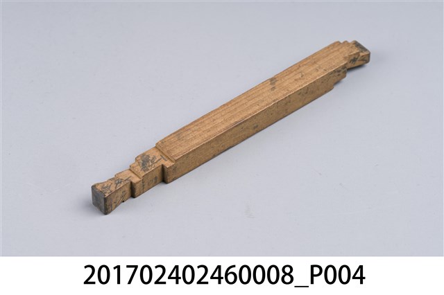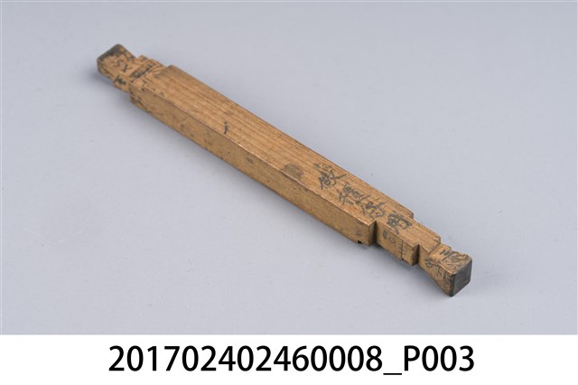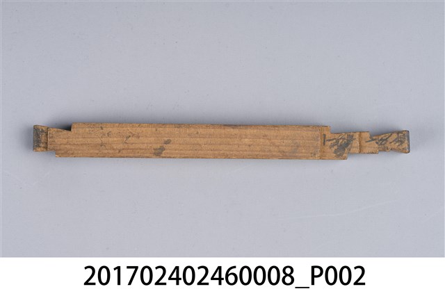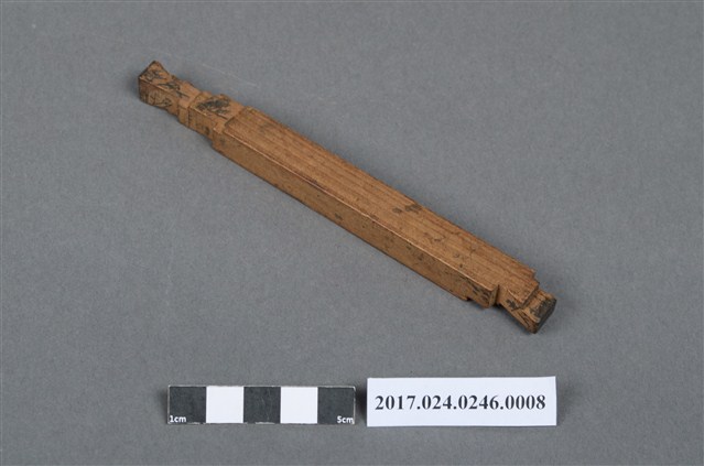 本文物為日治時期南投街木匠工具箱內一件榫規,用途是測繪工具。(撰稿人:曾國棟)