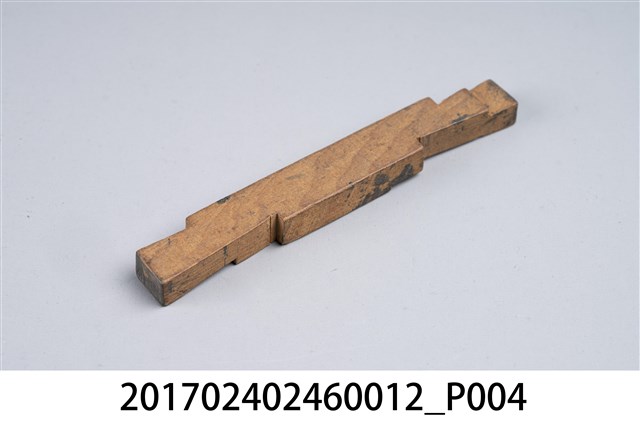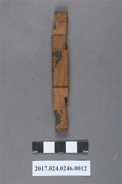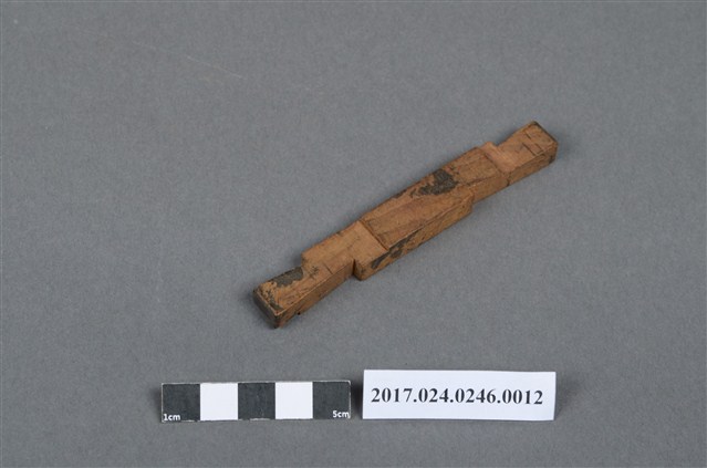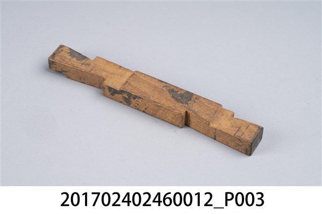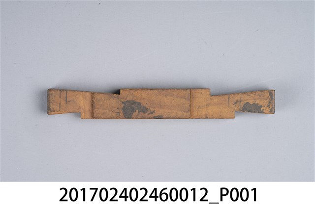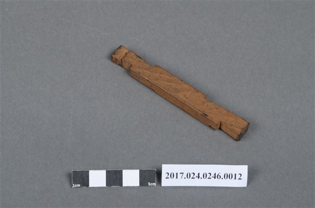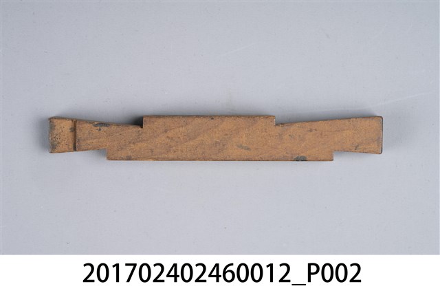 本文物為日治時期南投街木匠工具箱內一件榫規,用途是測繪工具。(撰稿人:曾國棟)