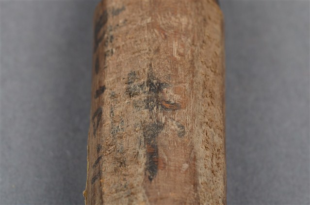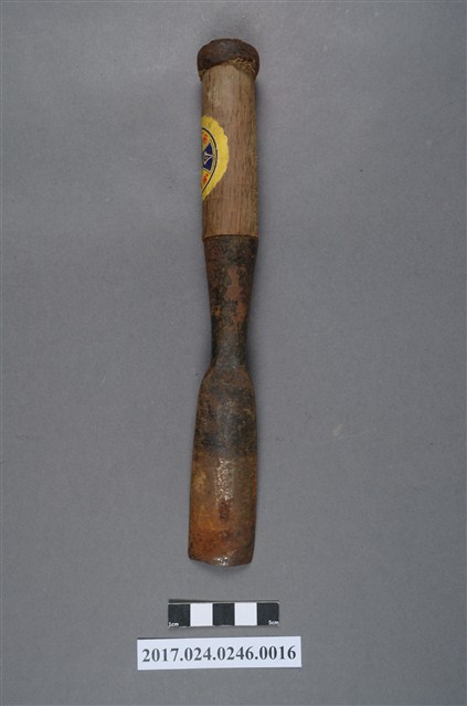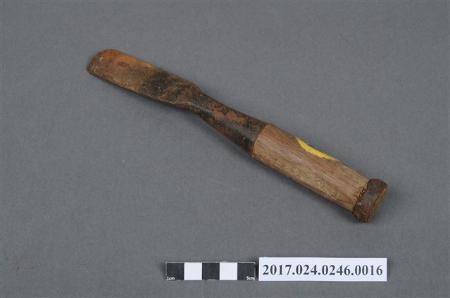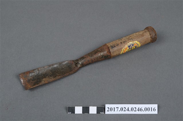 本文物為日治時期南投街木匠工具箱內一件鑿刀,木作的工具,主要是用來鑿榫頭的孔,還有各式修邊的工作。(撰稿人:曾國棟)