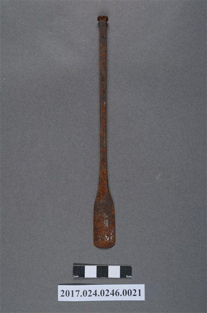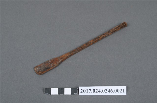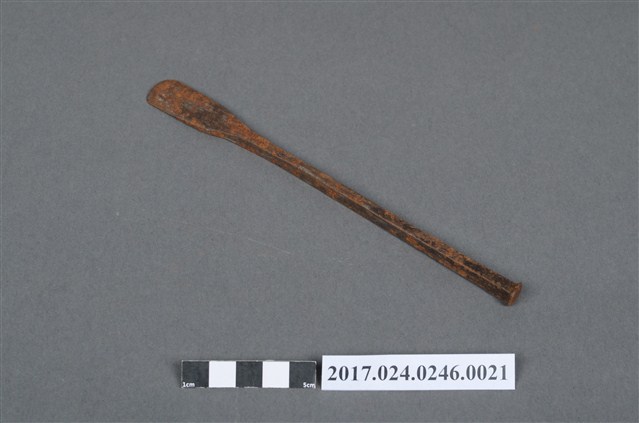 本文物為日治時期南投街木匠工具箱內一件鑿刀,木作的工具,主要是用來鑿榫頭的孔,還有各式修邊的工作。(撰稿人:曾國棟)