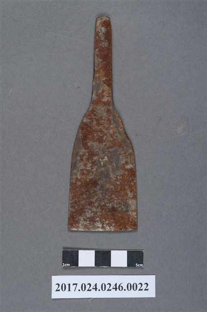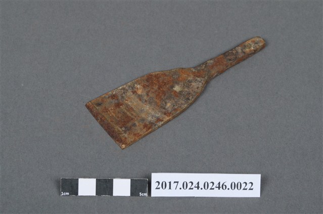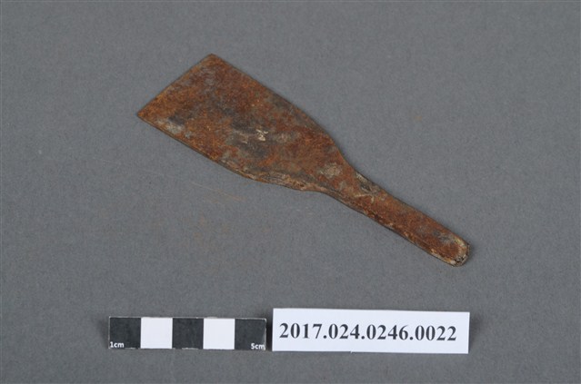 本文物為日治時期南投街木匠工具箱內一件鑿刀,木作的工具,主要是用來鑿榫頭的孔,還有各式修邊的工作。(撰稿人:曾國棟)
