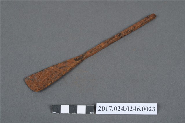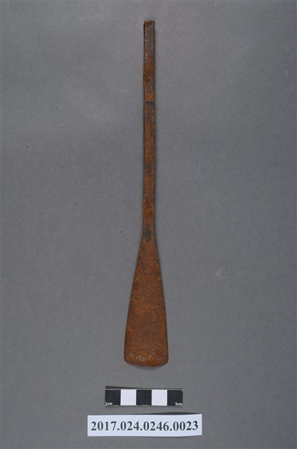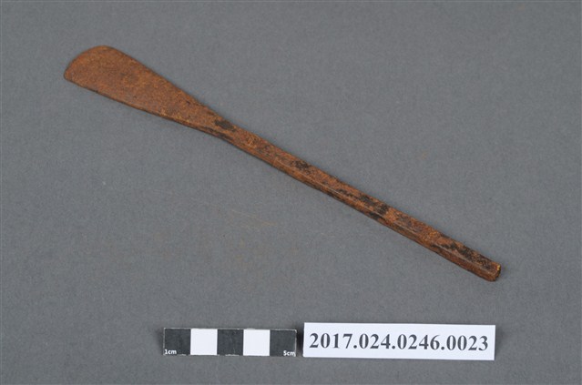 本文物為日治時期南投街木匠工具箱內一件鑿刀,木作的工具,主要是用來鑿榫頭的孔,還有各式修邊的工作。(撰稿人:曾國棟)