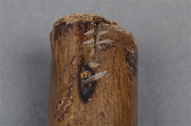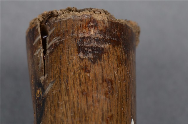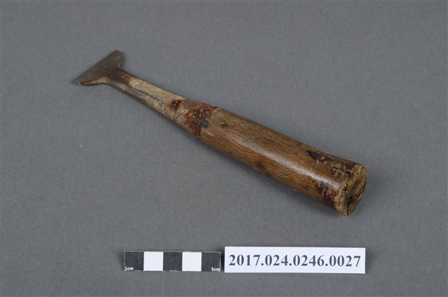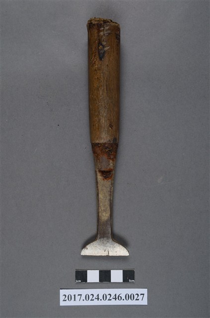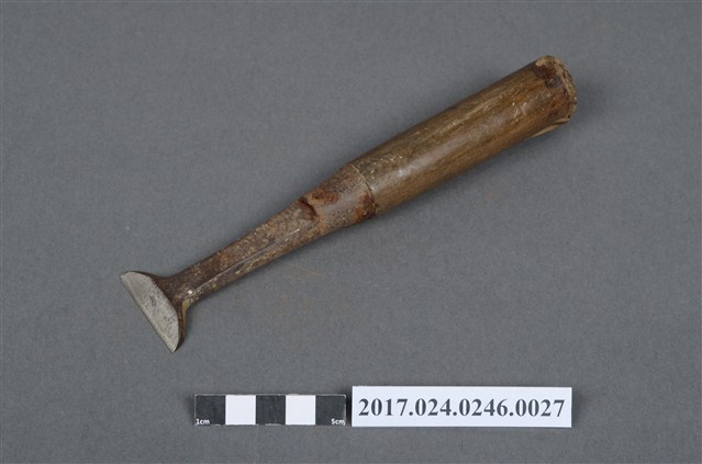 本文物為日治時期南投街木匠工具箱內一件鑿刀,木作的工具,主要是用來鑿榫頭的孔,還有各式修邊的工作。(撰稿人:曾國棟)
