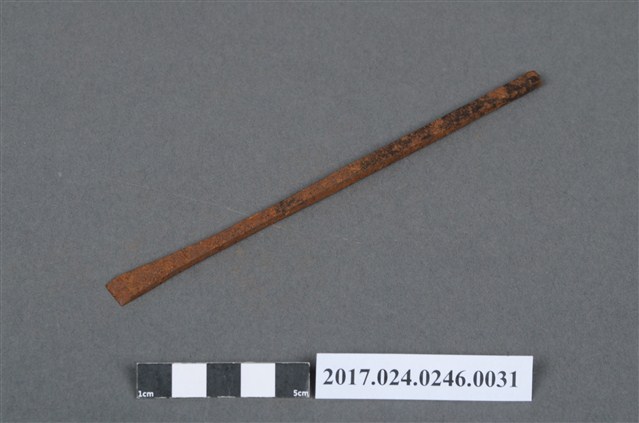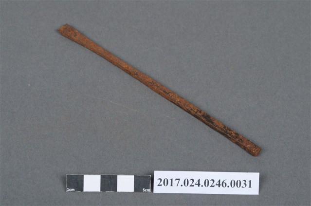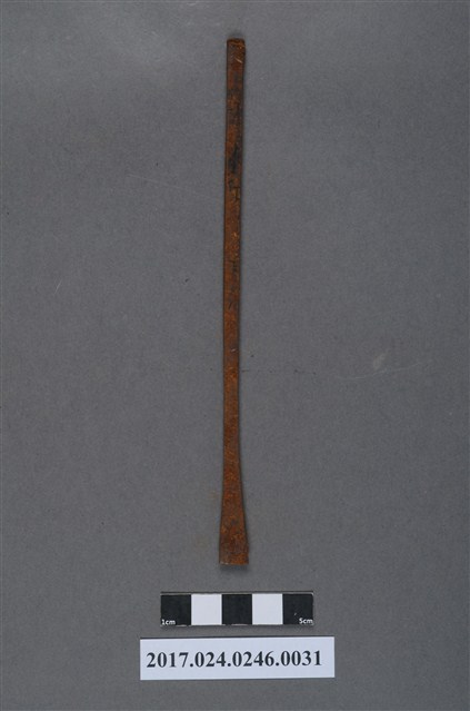 本文物為日治時期南投街木匠工具箱內一件鑿刀,木作的工具,主要是用來鑿榫頭的孔,還有各式修邊的工作。(撰稿人:曾國棟)