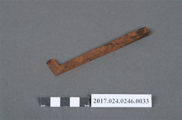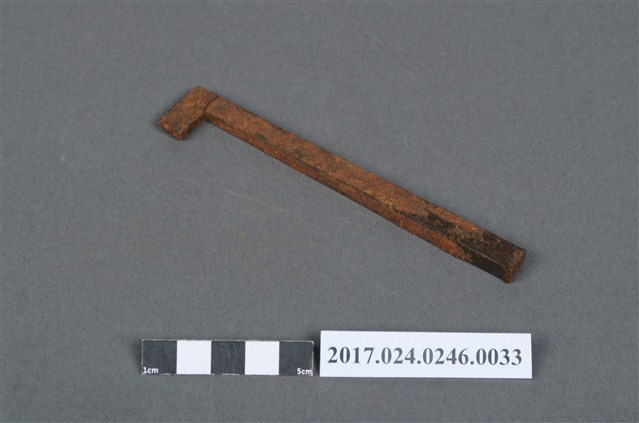 本文物為日治時期南投街木匠工具箱內一件鑿刀,木作的工具,主要是用來鑿榫頭的孔,還有各式修邊的工作。(撰稿人:曾國棟)