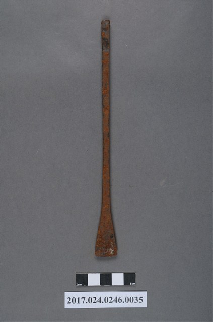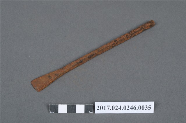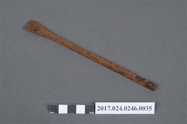 本文物為日治時期南投街木匠工具箱內一件鑿刀,木作的工具,主要是用來鑿榫頭的孔,還有各式修邊的工作。(撰稿人:曾國棟)