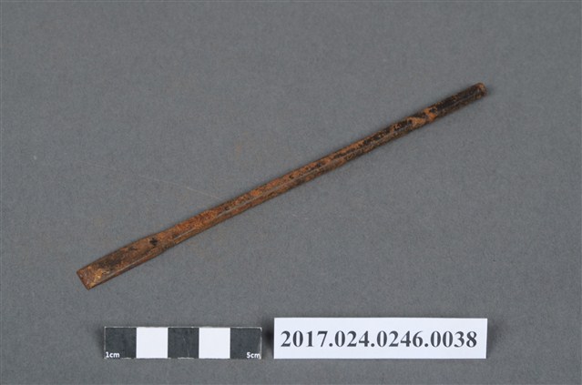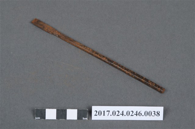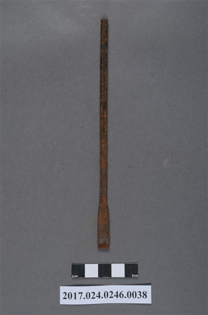 本文物為日治時期南投街木匠工具箱內一件鑿刀,木作的工具,主要是用來鑿榫頭的孔,還有各式修邊的工作。(撰稿人:曾國棟)